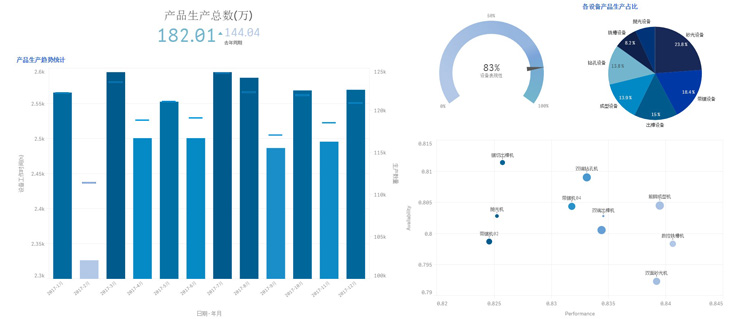 我们对智能制造的推行提供可视化的辅助手段,对企业管理决策提供有力的分析工具,整合各业务模块数据,建立高效、统一、共享的生产制造数据分析平台。