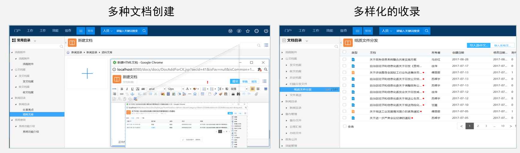 档案管理、资料管理、文档权限管理、制度规范管理,