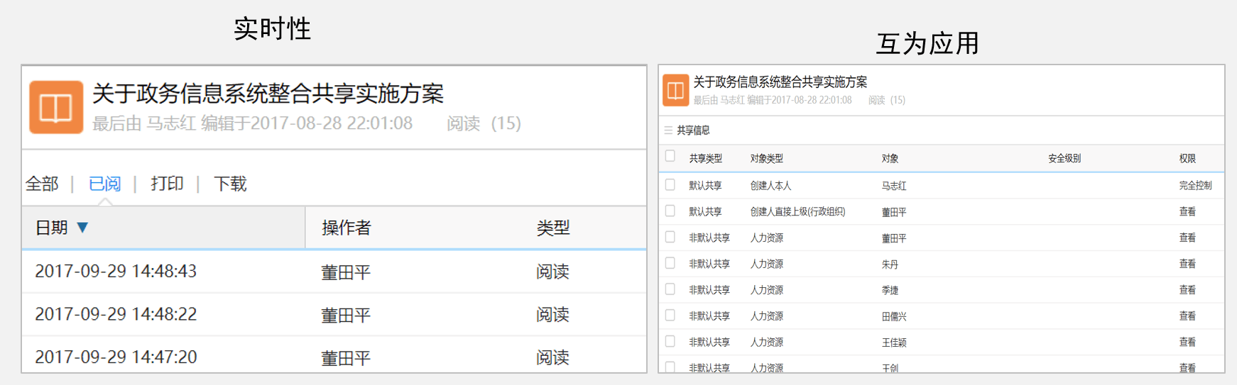 具有实时性:权限性、流转性、档案管理的标准性。