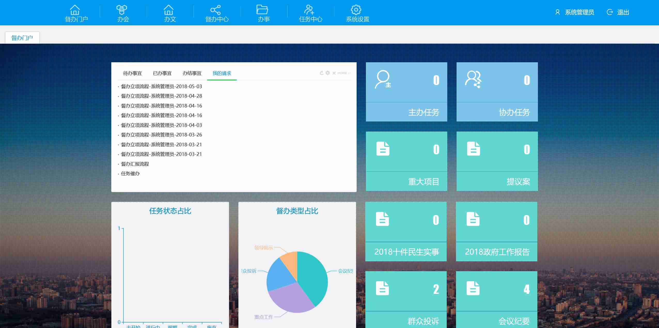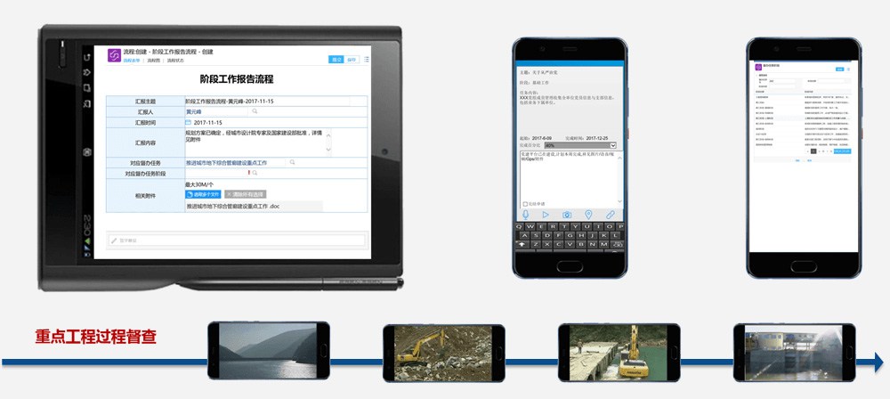 工作汇报定时提醒、超期自动提醒,主动汇报,定期汇报、任务完结汇报,支持多媒体的汇报方式,汇报自动推送到分管理领导、督查室。用户可异地、实时、移动查看,汇报,结案、续办、跟踪移动化,“互联网+”的方式开展督查督办。