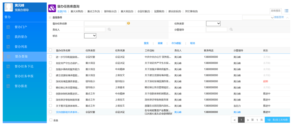 对重点工作的目标、结果、责任、时效清晰下达与督办,减少督查室重复操作。