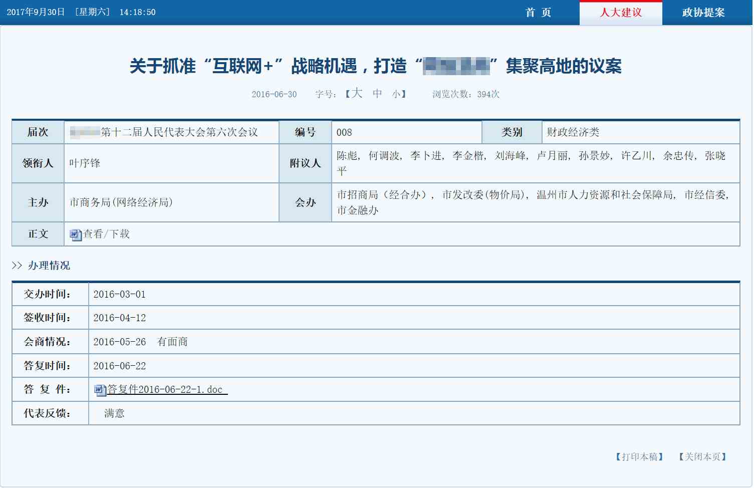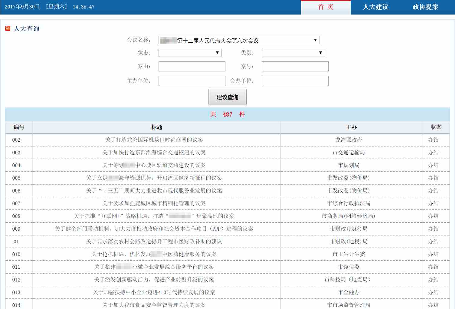 实现建议(提案)的提报、交办、承办、酝酿、查重、审核、答复、催办、督办全流程业务的信息办公自动化管理