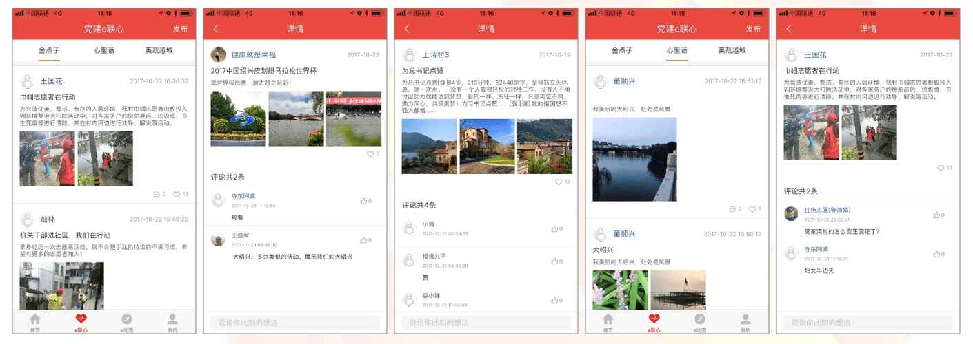 互动视角:类朋友圈功能,强调党员发布视角观点,话题,以个人的角度发布,互动于整个平台, 党员先锋社会实践写实,发布照片新闻,发布以互助为主题的源信息,发挥先锋带头,为民众解决困难,通过支部审批全面立即可见。