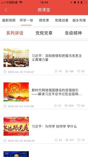 党建百宝箱:党务制度的集中展现,党员随身工具箱,重点、必修课快速推送,如两学一做,三会一课等阶段性主题相关工作信息。多种类型展示:视频、音频、图片等多种课堂信息传递。