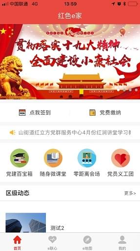 党员在线:不仅是党员的专用窗口,还是普通用户的窗口,移动端展示党建的各类服务请求,学习、工作、会议、知识等信息,交互的粘联用户,快速注册、在线打卡积分、最新支部动态。