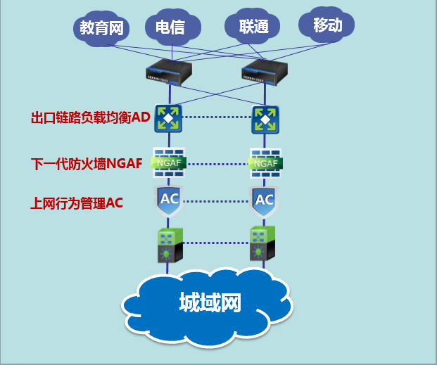·城域网出口安全优化——如何避免单链路故障、提升多链路带宽利用率、防护终端用户PC安全、管控各校上网行为?