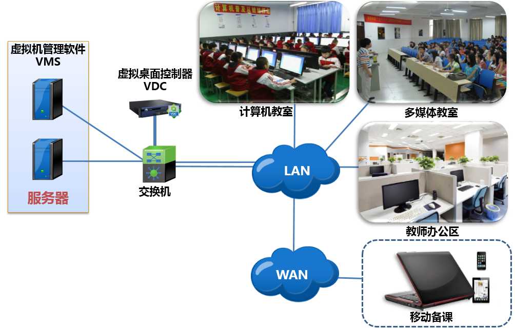 · 减少终端PC维护量,加快教学环境部署切换;