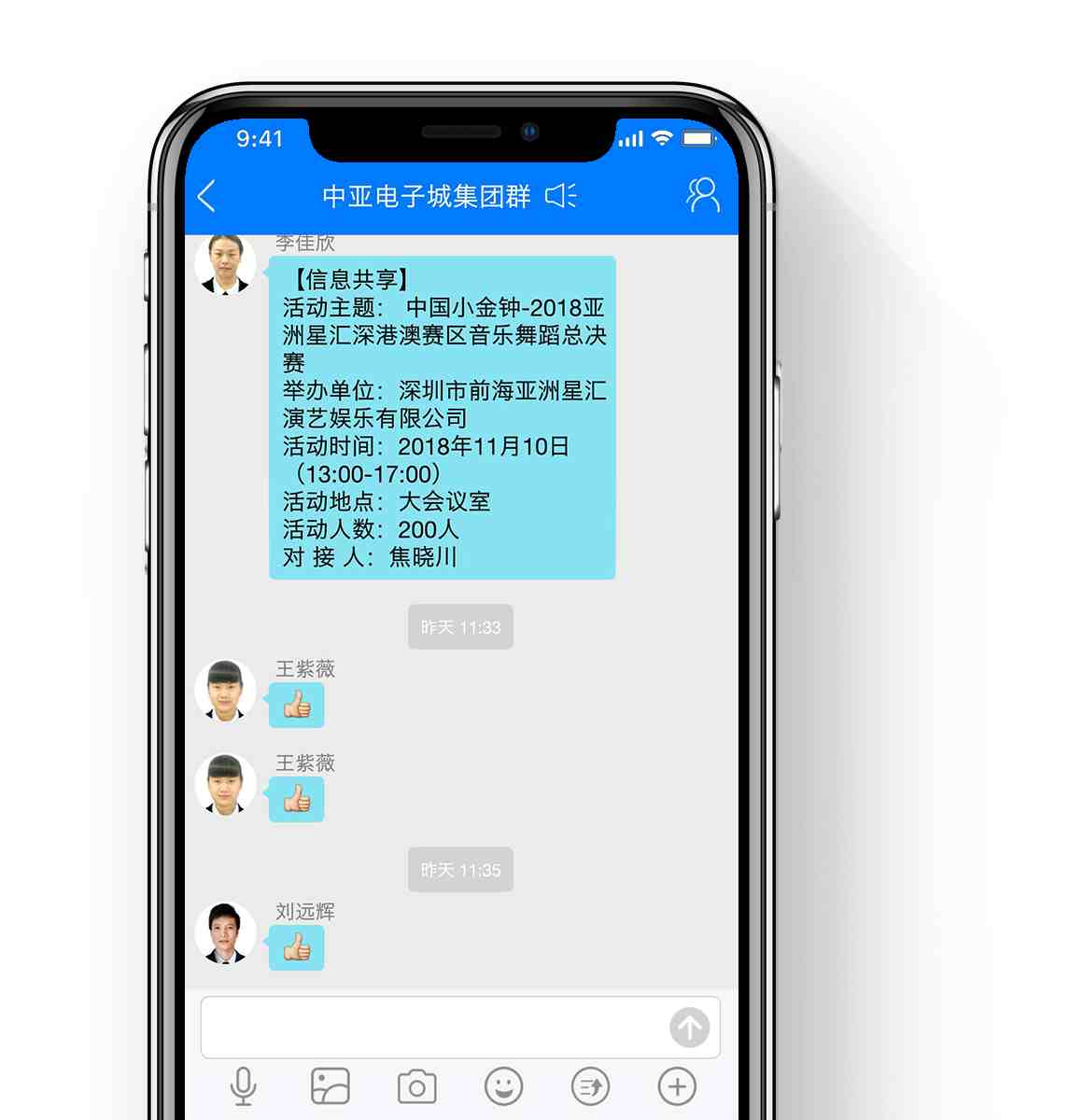 - 无论是企业内的全员群、部门群、内部群,还是企业间的合作群,均支持实名聊天,如有员工离职,自动退群。